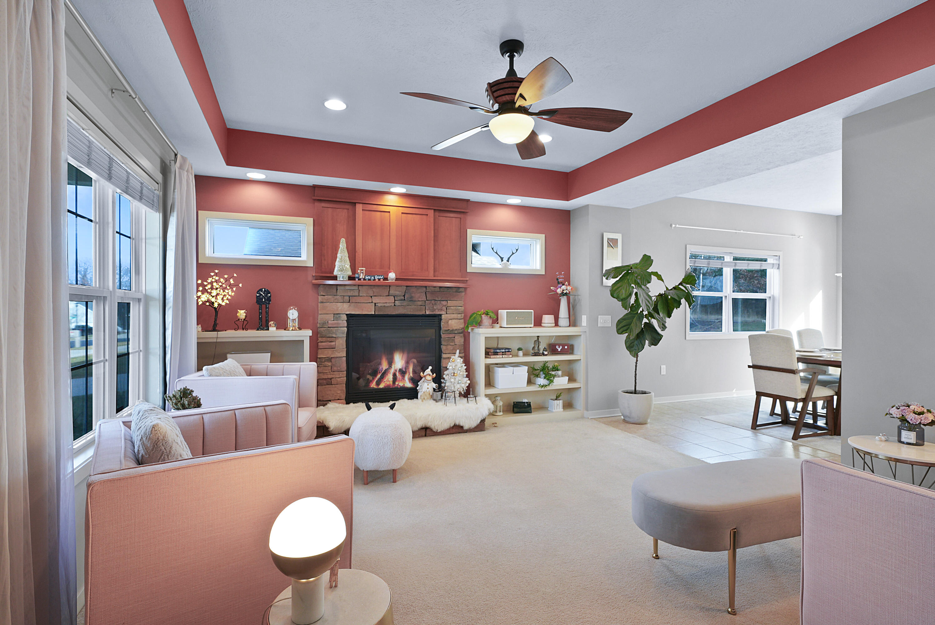 This immaculate residence boasts 5 bedrooms and 3.5 baths, providing ample space to grow and thrive. The main level features a captivating tray ceiling in the living room, a gas fireplace surrounded by built-in bookshelves, and a built-in desk. Convenience meets practical living with main-floor laundry, lockers, and a mudroom with a bench by the garage.